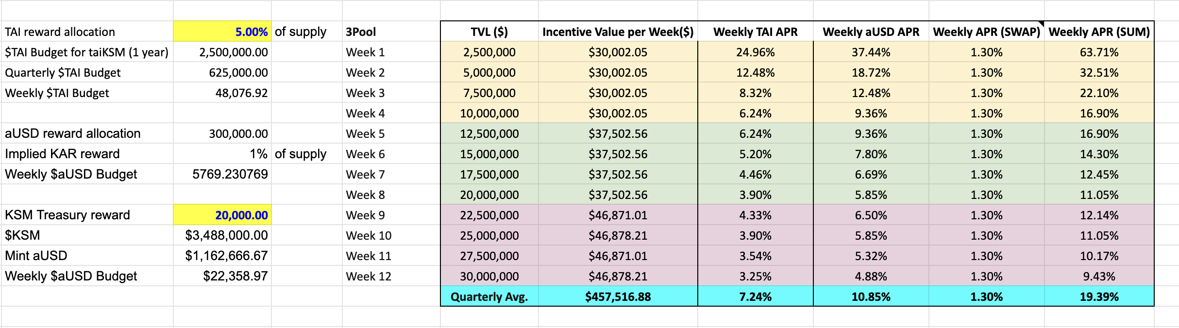 Below is an indicative allocation of the reward subsidy, and the expected APRs at varied levels of TVLs.