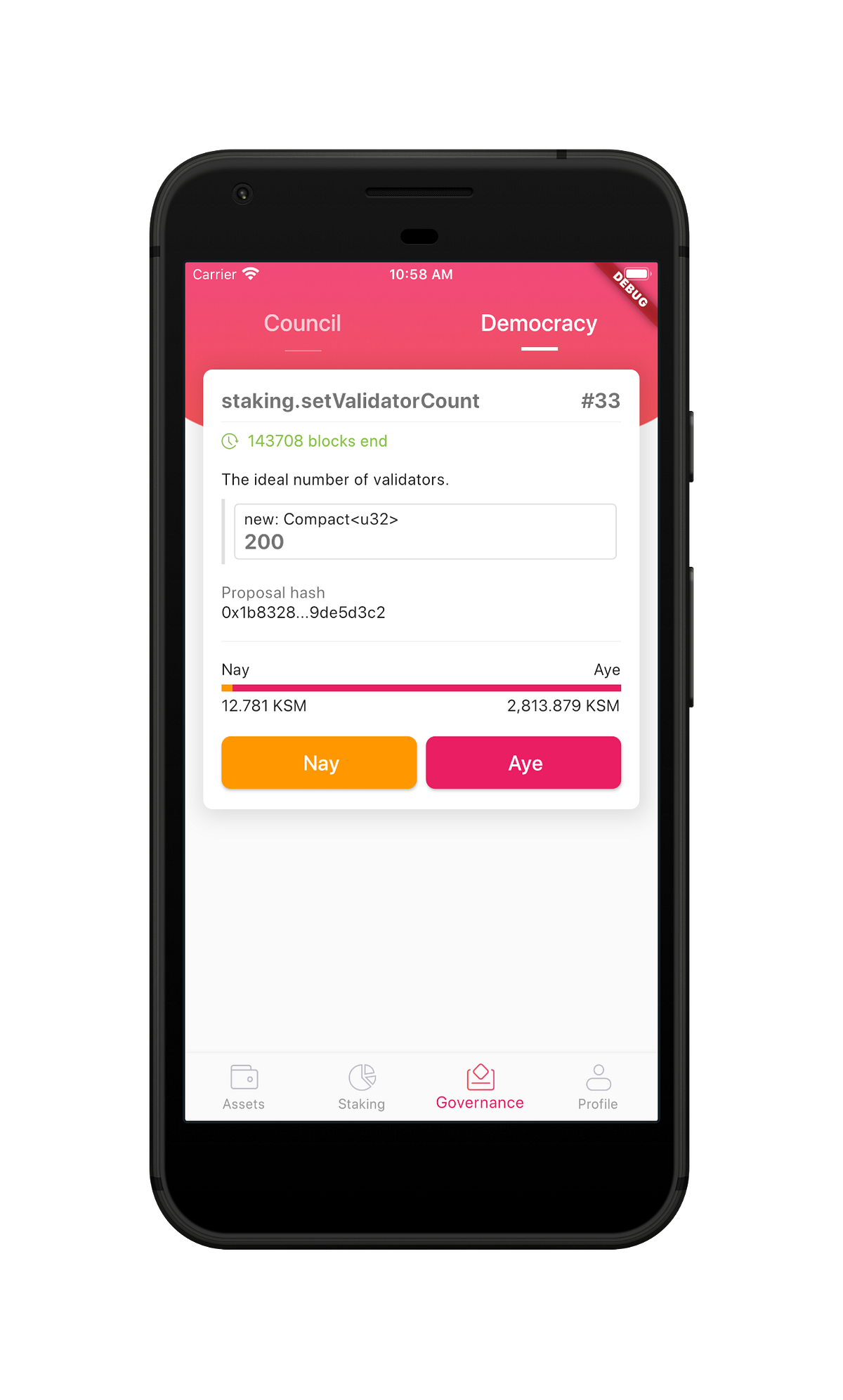- Governance module, Democracy can view the referendum information, and can cast your vote in addition to the lock-up period.