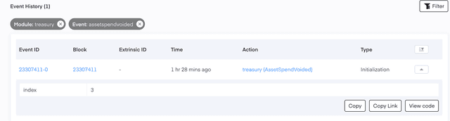 The payout with spendID 3 being voided can be verified on-chain through Polkadot-JS UI, as shown below.